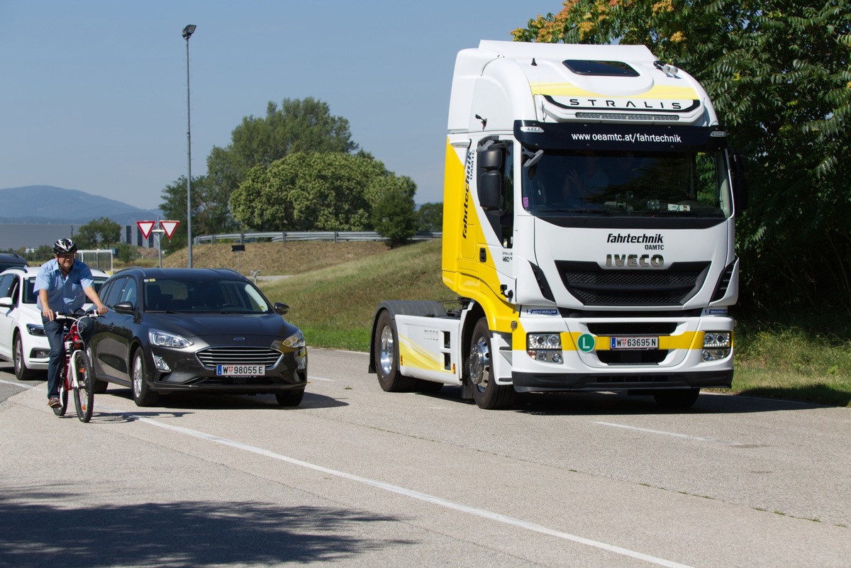 ?Der getestete Abbiegeassistent hat in allen Situationen einwandfrei funktioniert: sowohl Radfahrer in der zweiten Reihe als auch Fußgänger an Kreuzungen wurden vom System als solche erkannt und haben sowohl eine akustische als auch optische Warnung an den LKW-Fahrer ausgelöst, als dieser nach rechts abbiegen wollte,? zeigt sich Hermann Wirrer, ÖAMTC-Chefinstruktor für LKW und Busse zufrieden.