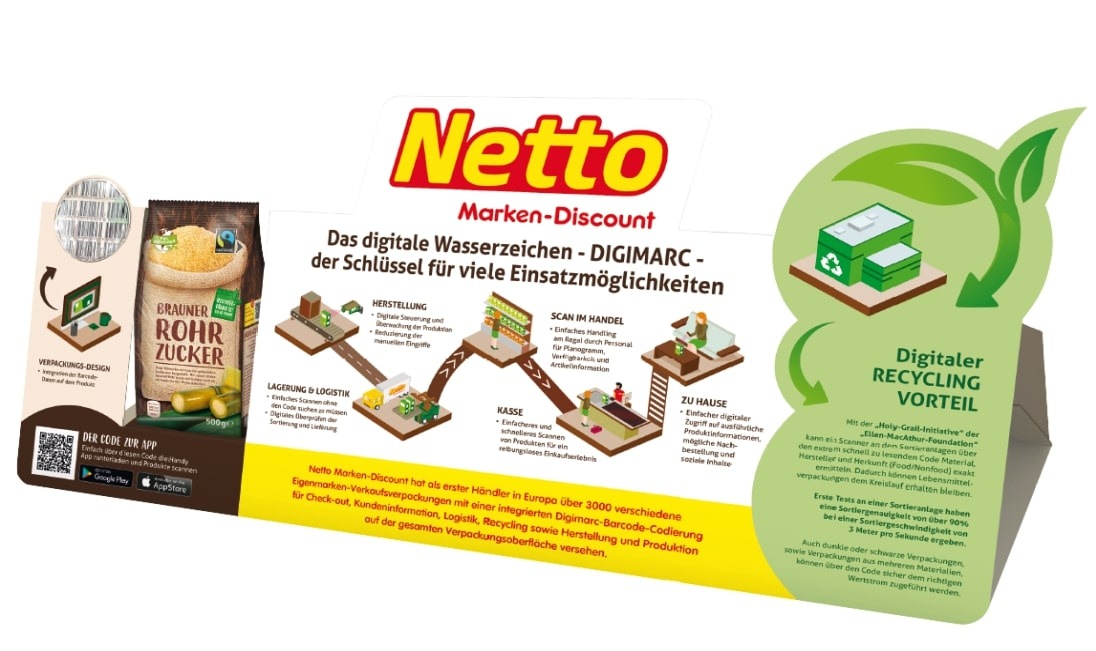 Mit dem fortschrittlichen Verpackungssystem leistet Netto Marken-Discount gleichzeitig einen wesentlichen Beitrag zur industriellen Automation und unterstreicht seine nachhaltiger ausgerichtete Verpackungsstrategie und Kundenorientierung. Und auch in Zukunft treibt Netto Marken-Discount den technologischen Fortschritt weiter voran: Bereits über 3.000 verschiedene Eigenmarkenartikel stattete Netto Marken-Discount bisher mit den innovativen Barcodes aus. Bis März 2021 sollen alle Verpackungen der Netto-Eigenmarkenartikel mit den unsichtbaren Codes versehen werden.