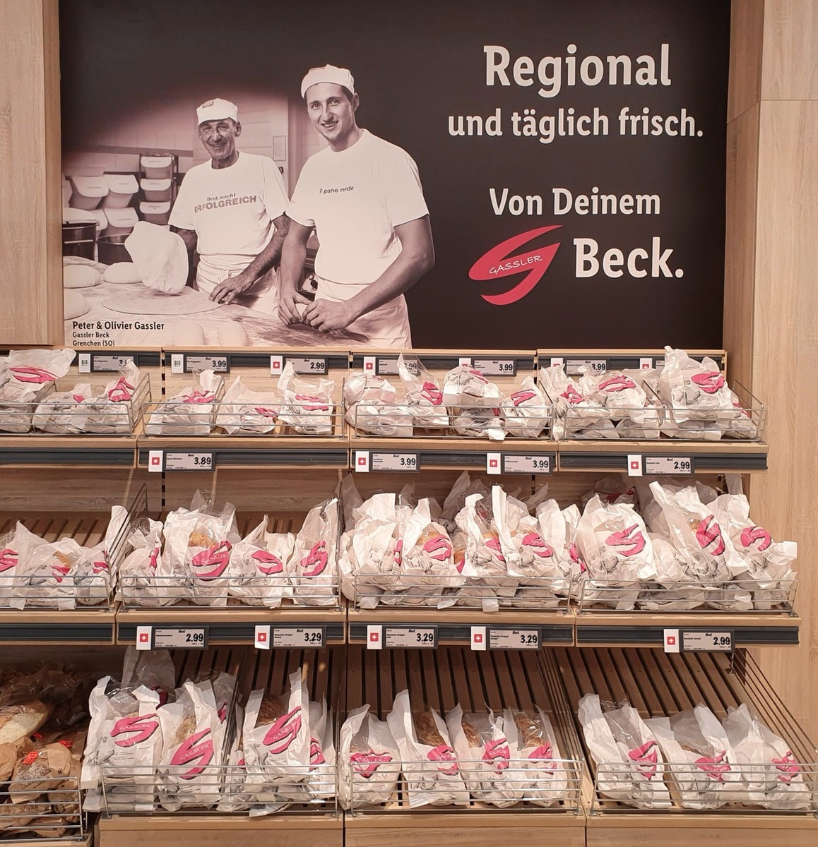 Lidl Schweiz beginnt das neue Konzept mit einem langjährigen Partner. Die Traditionsbäckerei Gassler aus Grenchen (SO) belieferte Lidl Schweiz schon bis anhin täglich mit frischem Brot. Nun bekommt das Gassler-Brot seinen eigenen Bereich, welcher auch die Marke Gassler trägt. Täglich produziert die Bäckerei 15 verschiedene regionale Brotspezialitäten für Lidl Schweiz. Peter Gassler, Inhaber des Familienbetriebs Bäckerei Gassler erklärt: „Die Kooperation mit Lidl Schweiz freut uns sehr. Wir können unser feines Brotsortiment in mehreren Lidl-Filialen anbieten und dadurch einer grösseren Kundschaft zugänglich machen.“