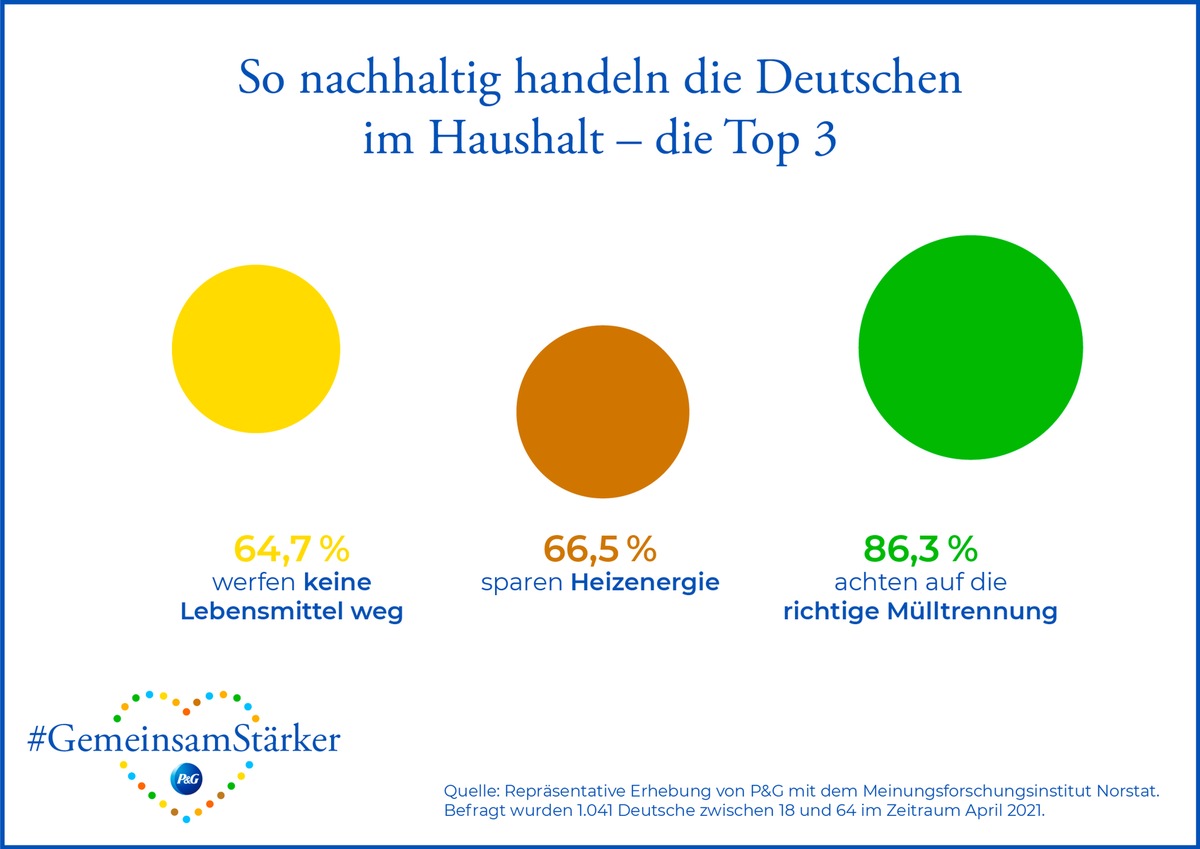 Im Rahmen einer repräsentativen Untersuchung mit den Markt- und Meinungsforschungsexperten von Norstat Deutschland und Procter & Gamble wurden 1.041 Personen in Deutschland zwischen 18 und 64 Jahren zu ihrem umweltbewussten Handeln im Haushalt befragt.
