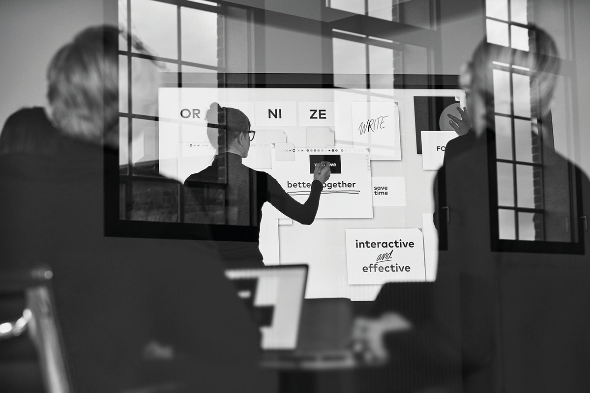 Die Kollaborationsplattform Weframe One digitalisiert Meetings und macht sie mit Interaktivität lebendig und produktiv. Weframe One kommt vor Ort im Meetingraum auf den speziell für Gruppenarbeit entwickelten Weframe Sessionboards zum Einsatz. Als Cloud-Technologie vernetzt sie darüber hinaus Menschen in hybriden Meetings von verschiedenen Standorten aus, etwa am Arbeitsplatz oder im Homeoffice.