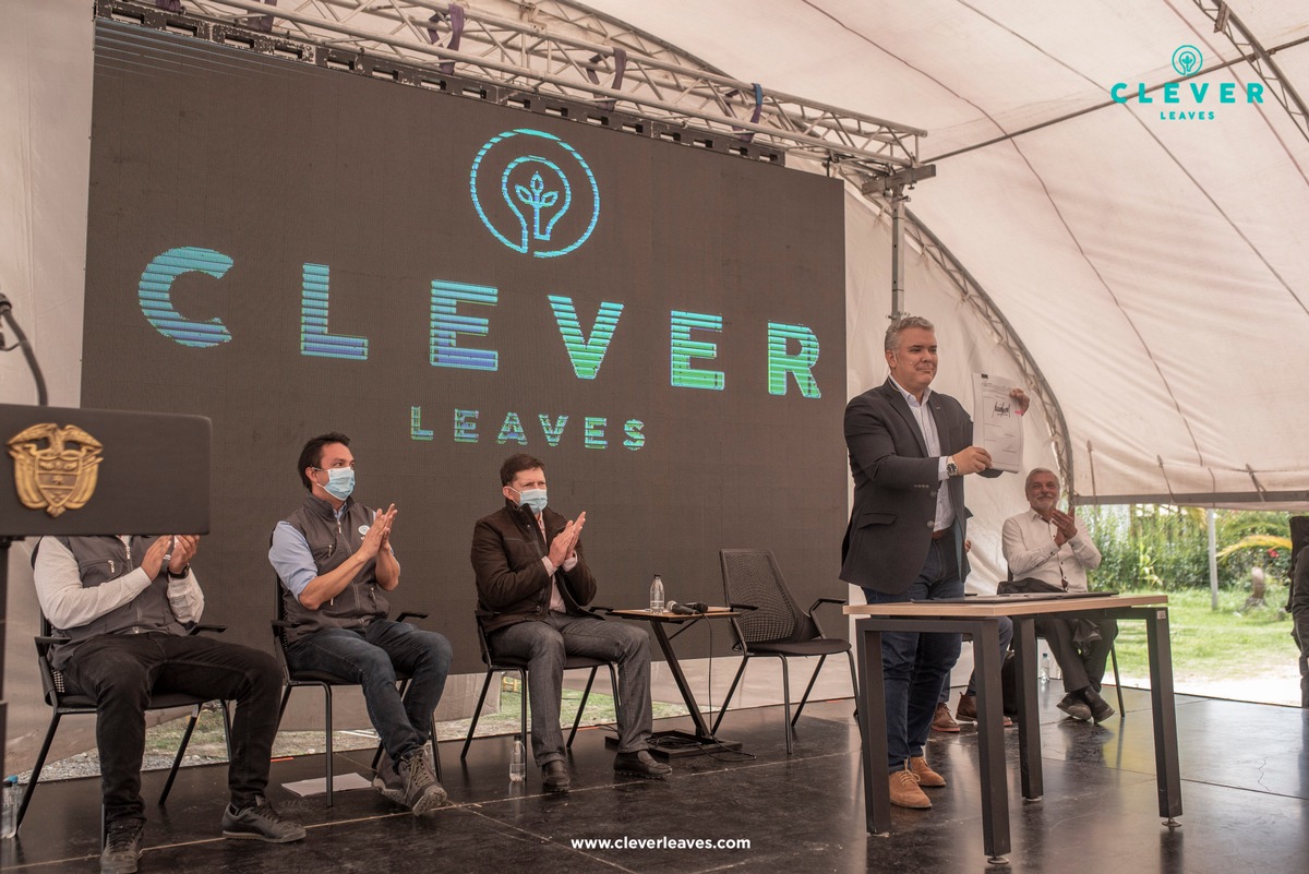 New York (ots) – Clever Leaves Holdings Inc. (Nasdaq: CLVR) („Clever Leaves“ oder das „Unternehmen“), ein multinational agierendes Unternehmen und lizenzierter Hersteller von Cannabinoiden in pharmazeutischer Qualität, empfing Ende Juli den kolumbianischen Präsidenten Duque in seiner Produktionsstätte in Kolumbien. Der Präsident unterzeichnete ein neues Dekret, das lizenzierten kolumbianischen Cannabisunternehmen wie Clever Leaves erlaubt, an der kommerziellen Produktion und dem Export von medizinischem Cannabisblütenmaterial teilzunehmen. Der Gesetzentwurf beinhaltet auch den Zugang zu medizinischem Cannabis für Patienten in Kolumbien.