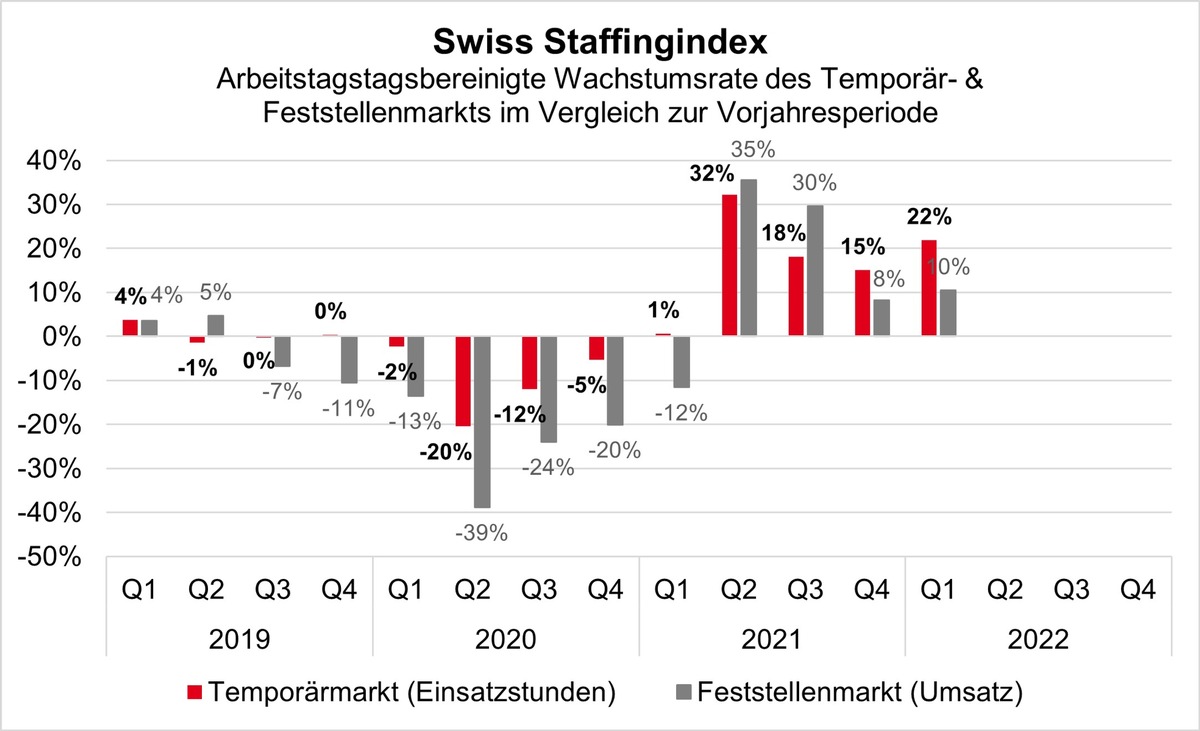 Swiss Staffingindex: Personaldienstleister auch im ersten Quartal 2022 auf Wachstumskurs