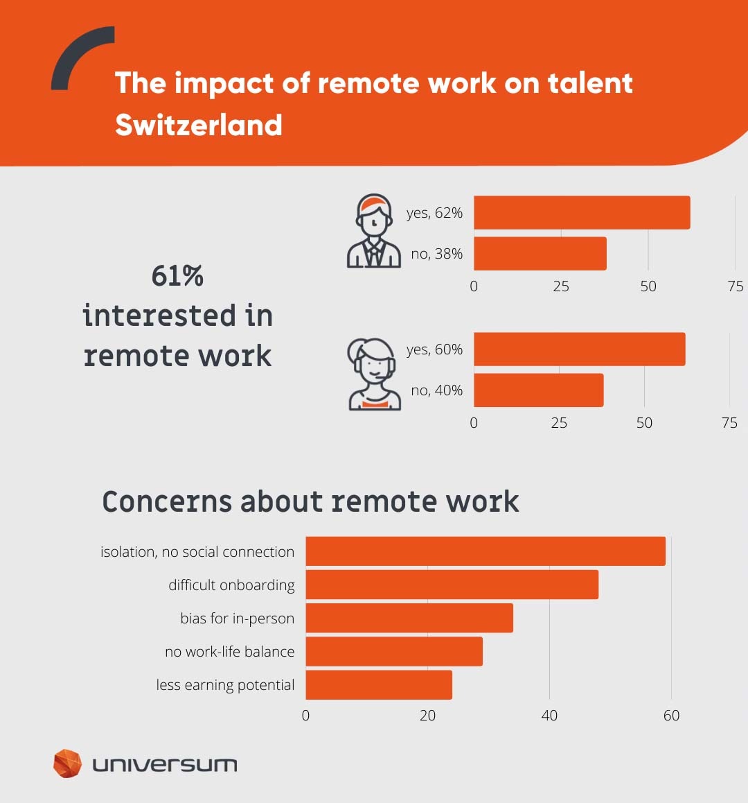Die Umfrage zeigt ausserdem, dass sich sowohl Studenten als auch Organisationen in Bezug auf die häufigsten Bedenken im Homeoffice ziemlich einig sind. Ihre grösste Angst besteht in der Gefahr Isolation und dass die sozialen Kontakte mit den Kollegen zu kurz kommen (59 %). Auch das Onboarding in einer neuen Firma wird remote von 48 % der befragten Studenten nicht als effektiv gesehen.
