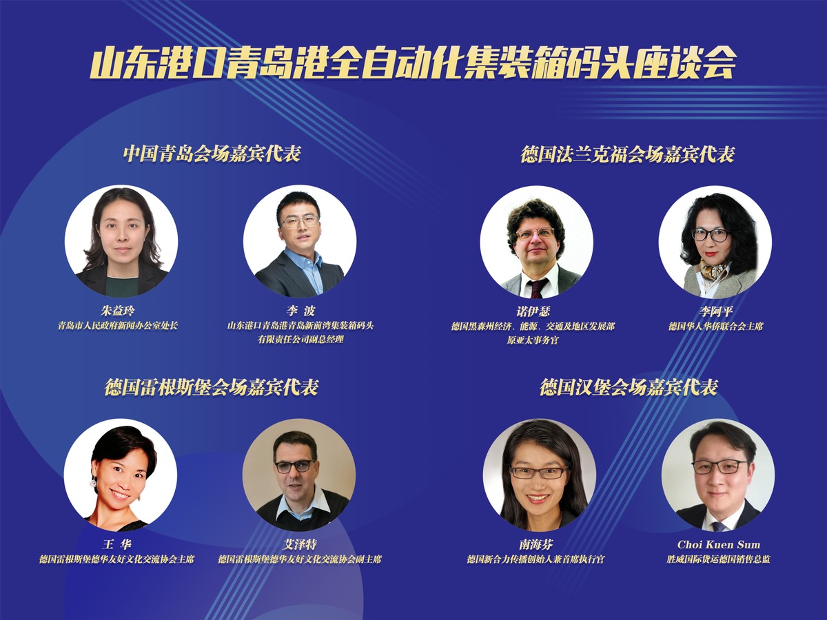 Am Morgen des 13. Dezember 2022 Ortszeit in Deutschland wurde in Frankfurt, Regensburg, Hamburg in Deutschland und Qingdao in China eine Besprechung über vollautomatische Containerterminals in Qingdaoer Hafen, Shandong durch eine Kombination von Online- und Offline-Kommunikationsweisen abgehalten. Die Veranstaltung wurde vom Informationsbüro der Volksregierung der Stadt Qingdao ausgerichtet und von CBT China Book Trading GmbH, der direkten Anstalt von China International Communications Group (CICG) in Europa, organisiert. Fast 30 Personen nahmen an der Veranstaltung teil, darunter Vertreter der chinesischen und deutschen Politik, der Tourismusbranche, der Wirtschaft, der Medien und Übersee-Chinesen.