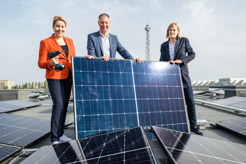 Der offizielle Baustart der drittgrößten Solar-Aufdachanlage Deutschlands begann in Anwesenheit von Vertretern aus Politik, Wirtschaft und dem öffentlichen Leben. Die Berliner Stadtwerke installieren auf über 20 Dächern der Messe Berlin eine 50.000 m² große Solaranlage, die eine Spitzenleistung von 8,5 Megawatt hat. Rund 20.000 Solarmodule der Serie Hi-MO X6 des PV-Weltmarktführers LONGi Solar werden dafür verbaut. Die Installation übernimmt die VODASUN-Unternehmensgruppe, ein Münchner Photovoltaik-Spezialist. Ab der Fertigstellung in 2025 spart die Messe Berlin rund 2.900 Tonnen CO2 pro Jahr ein und lässt Großveranstaltungen künftig klimaneutral werden.