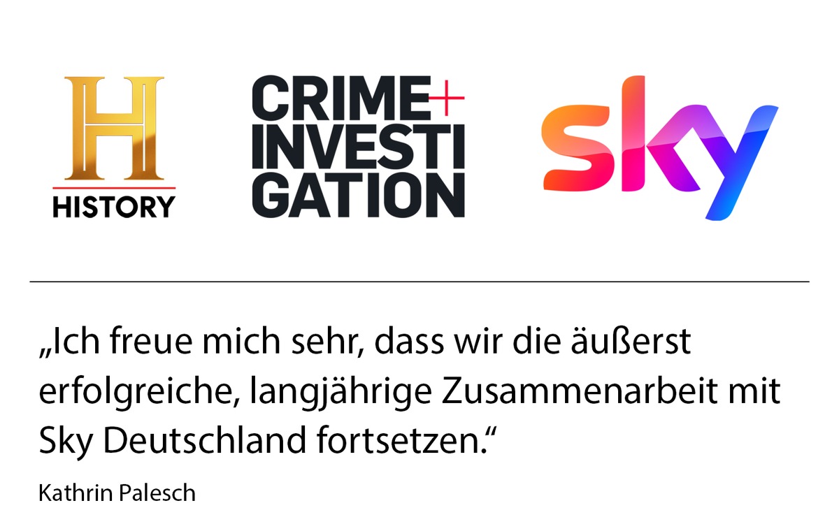 Kathrin Palesch, Geschäftsführerin von A+E Networks Germany: „Seit mehr als 14 Jahren kommen Sky-Kunden im deutschsprachigen Raum in den Genuss der hochwertig produzierten Doku-Inhalte unserer Sender. Ich freue mich sehr, dass wir diese äußerst erfolgreiche, langjährige Zusammenarbeit fortsetzen. Sky-Kunden in Deutschland, Österreich und der Schweiz profitieren dadurch auch weiterhin von den erstklassigen Dokumentationen und True-Crime-Formaten von The HISTORY Channel und Crime + Investigation.“