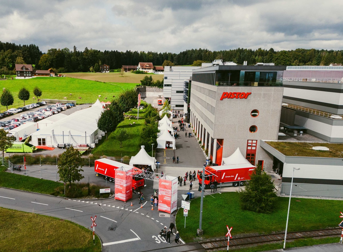 Drei Tage lang öffnete Pistor ihre Türen für die Rothenburger Bevölkerung, die Familien der Mitarbeitenden sowie für die Kundschaft. Insgesamt kamen fast 3″000 Leute vorbei. Sie erfuhren auf einem Rundgang, wie Pistors Logistik funktioniert, durften Elektrolastwagen besichtigen und liessen sich im Festzelt unterhalten und verköstigen. „Dieses grosse Interesse an Pistor freut mich sehr“, sagt Patrick Lobsiger. „Insbesondere konnten wir uns damit bei der Rothenburger Bevölkerung bedanken für das positive Abstimmungsresultat vom letzten Jahr.“ Im März 2023 hatte das Stimmvolk dem „Bebauungsplan Hasenmoos Süd“ mit über 85% Ja-Stimmen grünes Licht erteilt. Somit wird Pistor am Hauptsitz in Rothenburg auf einer Fläche 31″700 Quadratmetern neue Infrastruktur bauen. Dies in Etappen und mit einer CO2-reduzierenden Bauweise. Es sind ausserdem eine Photovoltaikanlage auf dem Dach, eine Teilbegrünung der Fassade sowie der vermehrte Einsatz von Elektro-LKWs geplant.