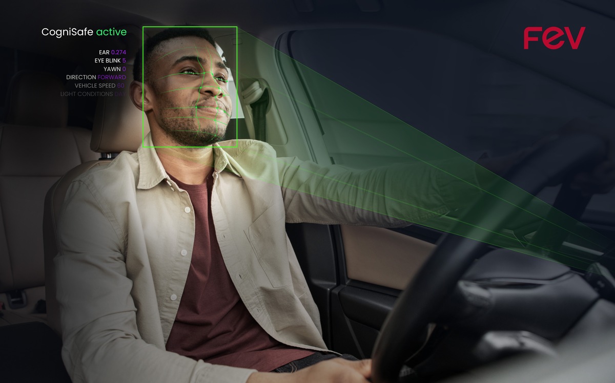 CogniSafe nutzt eine am Markt einzigartige Kombination aus Funktionen, die untereinander abgestimmt sind. Dabei wird auf ein Netzwerk von Kameras für sichtbares Licht und Infrarot-Spektrum zurückgegriffen, um das Fahrerverhalten aus unterschiedlichen Winkeln zu analysieren. Auf dieser Basis nimmt das System beim Fahrer kontinuierlich eine Blickverfolgung, eine Analyse des Augenzustands (Prozentsatz des Augenschlusses, PERCLOS) und eine Einschätzung der Kopfhaltung vor, wodurch weitere Aufschlüsse hinsichtlich Aufmerksamkeit, Müdigkeit bzw. Schläfrigkeit gezogen werden können. Künstliche Intelligenz spielt bei den Funktionen von FEVs jüngster Entwicklung eine zentrale Rolle. Durch den Einsatz von Convolutional Neural Networks (CNN) werden präzise Echtzeitanalysen durchgeführt, die sich dynamisch an verschiedene Fahrer und Umgebungsbedingungen, etwa unterschiedliche Lichtverhältnisse, anpassen und sich kontinuierlich verbessern.