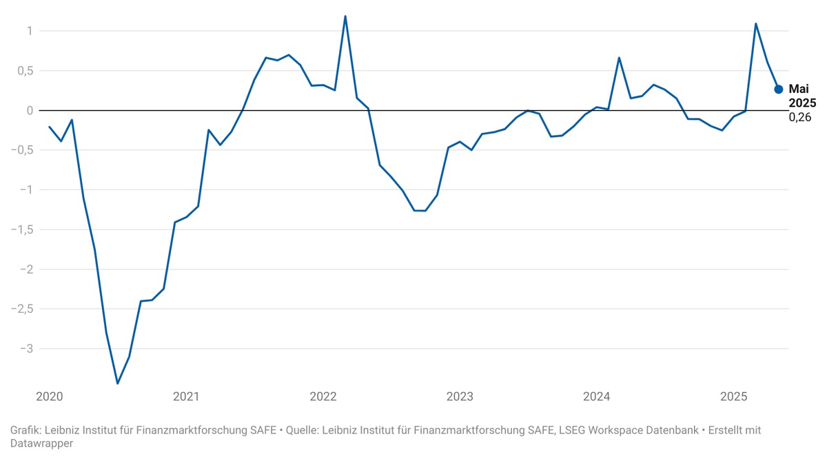 Im April 2025 kündigte US-Präsident Donald Trump weitreichende Importzölle an, die Koalitionsverhandlungen in Deutschland gerieten ins Stocken und die globalen Spannungen nahmen zu – all das führte zu einem Rückgang des Index. Florian Heider, Wissenschaftlicher Direktor des Leibniz-Instituts für Finanzmarktforschung SAFE, kommentiert: „Wenn die Spielregeln unklar werden, ziehen sich die Unternehmen zurück. Unsere Daten zeigen nicht nur, dass die Unsicherheit jetzt groß ist – sie hat eine neue Qualität: Was sich früher auf bestimmte Sektoren konzentrierte, betrifft jetzt die globale Wirtschaftsordnung, da die USA ihre traditionelle Rolle nicht mehr ausfüllen wollen. Dieser Wandel spiegelt sich in unserem Index wider.“