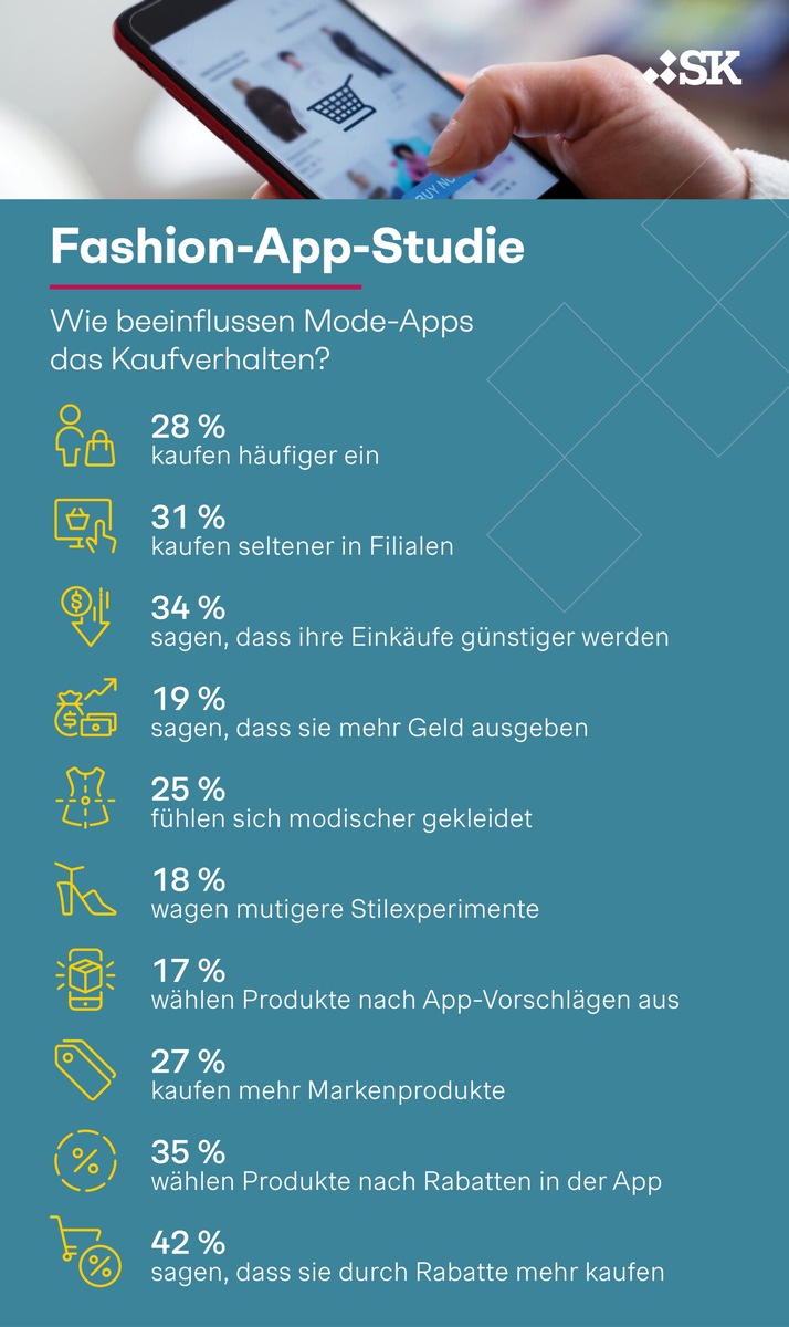 - 34 % sagen, dass ihre Einkäufe durch Fashion-Apps günstiger werden, 19 % sagen, sie geben mehr aus